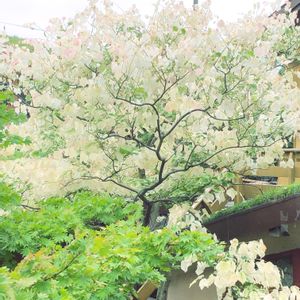 横浜の新百合ヶ丘にあるケーキ屋さん、リリエンベルグのお庭にあった一際美しい木に目が奪われました。 店員さんに名前を聞いたら、親切に教えて下さいました。 これは欲しいなぁと探して、せっかく見つけましたが、大きくなるので鉢植えには向かないそうです😢 ああ、お庭が羨ましい〜