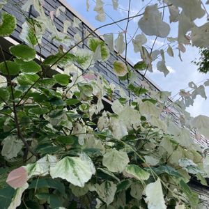 ハナズオウシリーズ2弾、シルバークラウド、名前が素敵で見た目も軽やか。ピンクも入りトリカラー。 葉っぱは薄く腑の面積も多いので強い太陽光に慣れてないと葉焼けしてしまう。 昨年は日向で葉焼けしてしまったので、今年は半日陰へ。