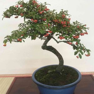 コトネアスター ☘🌲🍎 ある盆栽展より…⑮ 実物盆栽🍎 小品ながら実付きが良いですね☺️