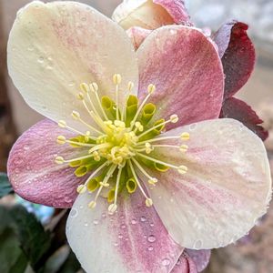 Ⅰ・ Ⅱ クリスマスローズ キャメロット キンポウゲ科 多年草(耐寒性多年草) 学 名 : ヘレボラス ヘレボルス 花 期 : 冬〜春 草 丈 : 20~30cm前後(生育後の高さ) 株張り : 30~50cm前後(生育後・環境差がある) 耐寒性 : 強い(-12℃~-15℃ ) 耐暑性 : 普通(高温多湿は苦手) 日 照 : 明るい半日陰 原産地 : ヨーロッパ ニゲルとリビタスの交配で 両種の中間的な花色 ツボミはピンクで、開花するにつれ クリーム色、再びピンクへと変化する 色の移り変わりがとても美しい やや木立になり横向きに多数の花を咲かせ庭植えにも見栄えがする とあります 初めてのクリローだからちゃんと 育てられるかな…😅 Ⅲ・Ⅳ ホソバヒイラギナンテン (マホニアコンフューサ) ん?花は黄色いはずなんだけど…(?_?) 薄紫の実もなっています