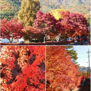 2枚目です😊🙏 🍁河口湖もみじ回廊🍁 とても美しい紅葉を見ることが出来ました♡夕方でライトアップも始まっていました。夜もとっても綺麗なのだろうなと思いました。 ほうとうを食べて帰ってきました😋
