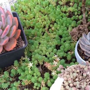 今週の🐰監督のセダム畑 お花持ってるー❗ ミルキーウェイのお花🌸 見えづらいけど、🐰監督足下のお宝たち ホワイトストーンクロプや スプリングワンダー レッドベリーが全部葉挿しっ子です🎶 新タマツヅリやプロリフェラあたりもいるかもしれない…ポイポイ癖… 大きくなぁれ。 このお宝たちが、サクサグラレモスグリーンとゴールデンカーペットに飲み込まれかけてるので、この後カットいたします!(´ε`;) 🏷毎月13日と14日は葉挿しの日