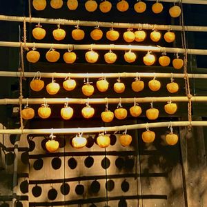いい感じの干し柿のシルエット 日本の良き風景