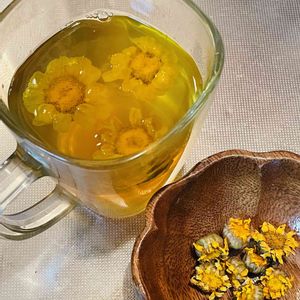 先日教えていただき、春菊の花を天日で乾燥させました。 カラカラになったので菊花茶にして飲んでみました😄 緑茶と合わせて淹れてみましたが、クセもなく、かと言ってちゃんと独特な香りもして美味しいです! ちょびさんありがとう😄