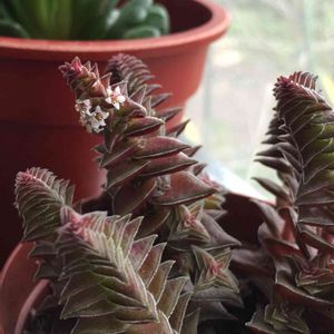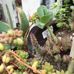 ジミにステキフォルム、茜の塔 プラスチックポットと保護色で気づくのおくれたけどー 土の上や葉?の上に赤ちゃんがいっぱい😍