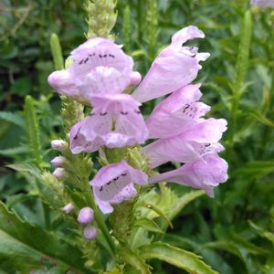 茎の断面が四角なので 別名「カクトラノオ(角虎の尾)」 シソ科 花言葉「希望」「望みの達成」 伸びた茎の頂部に、シソ科やゴマノハグサ科の花特有の唇形の花を穂状にたくさん咲かせます。
