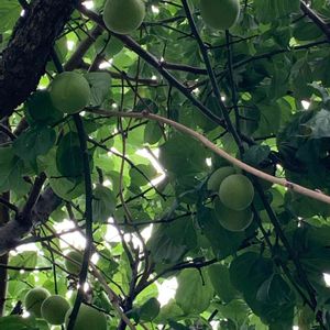 実家の 枝垂れ梅の実🌿 結構 大きいかな? 今日は この梅の木の 散髪😛を 頑張りました💪