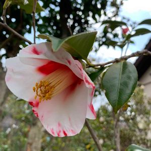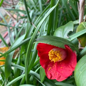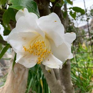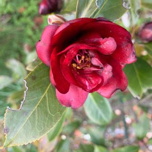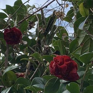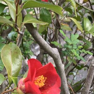 今日の椿🌺8 紅麒麟 かなー😅 なかなかいい色でしたが 高いところで 良く見えなかったんで🙇♀️ 見えても 分からないかなー😅 来週また がんばろー🧐