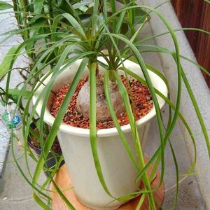 ノリナ (ポニーテールかは不明) 浅鉢から溢れ出る樹形を目指しましたが いっこも大きくならんかった(>人<;) 立派な根鉢の出来上がりでした。
