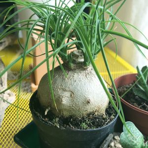 おはようございます! 少し雲ってますね! トックリラン植え替えと下葉を整理して、化粧直し完了です! トックリがヒビヒビ~!