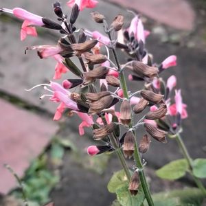 零れ種からあちこちで咲いてる サルビアコクシネアさん🎵 ピンクのお花が可愛いです💕 花言葉は…永遠の愛💖 だそうです😌