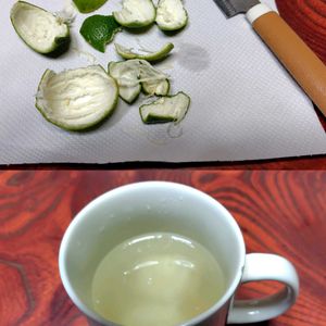 青ゆず皮をむいて 丸ごと お湯に入れて潰して飲む ゆず茶 クゥ〜酸っぱい😣 体がじわーっと 温まってきます😚