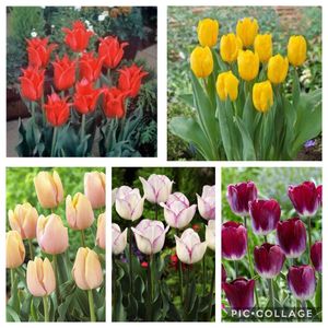 今日植えたチューリップ 上段左から プリティウーマン ストロングゴールド 下段左から マンゴーチャーム シャーリー カンザスプラウド お店の写真をお借りしました(^^)