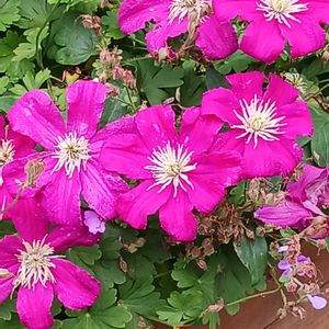 ビオガーデンより ①クレマチス ガーデンのは少し早いみたい我がやのは蕾は膨らんでいますがまだ咲きません🥲 ②真っ赤なツツジ ③ヤブテマリ ④ウツギ