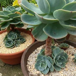 久しぶりにベランダの七福神の写真を撮りました📸 フクロウ祭🏷にも参加させていただきます^ ^ 前々回登場した2つのフクロウ鉢の寄せ植えの現状です🦉 ⬆️↘️はKOHさんから頂いた七福神です。写真ではわかりにくいが、ほぼ同じ大きさになっています✨ 過去のpic(七福神company No.76🏷)を見てもらうとわかりますが、子株が消えたのもあります💦 育つのが下手でなかなか増えませんね😆