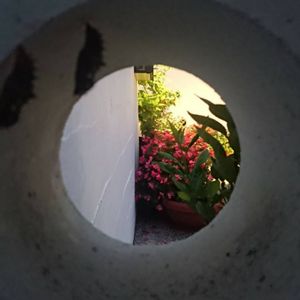 こんばんは😃🌃ブロック塀の穴を覗いたらさなぎがぶら下がっていました😅びっくり👀