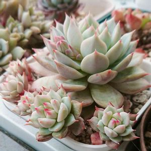 去年ジュレてしまった子の葉挿しちゃん。 お母さんはいなくなってしまいましたが、子供達は少しずつ大きくなってきました。 こんなに小さくても、それぞれ特徴が出ています🤗
