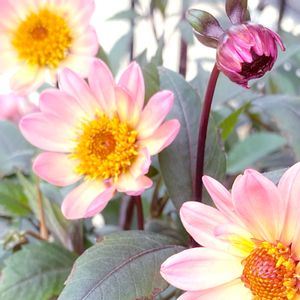 昨夜は土砂降り☔ 1⃣ダリア黒蝶🦋大輪系 銅葉のプチダリア🤎 2⃣ハミングブロンズ 3⃣ピーチラバーズ 冬は車庫で冬眠してるダリアです