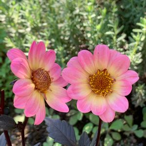 銅葉ぷちダリア ピーチラバーズ 去年の秋にお迎えして二度目の開花❁⃘*.゚ この色に一目惚れでお連れしたダリアさん♡ シックな黒い茎に銅葉〜緑銅葉色 で、このキュートなピンク色 大人可愛い~しぶ可愛い〜って感じかな〜 ( ´͈ ૢᐜ `͈ૢ)・*♡੭ੇ৸♡੭ੇ৸♡ 一般的なダリヤよりお花は小輪 多花性でコンパクトにまとまるので 清楚でかわいらしい花姿です♡