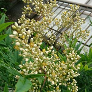 南天の花が咲き始めた❕今年はやけに花がデカクていっぱいです