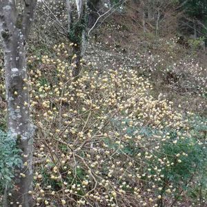 雑木林の中の のミツマタ 植物園で見たミツマタより小ぶり💛 でも手が入っていないので自然の姿で、たくさんの花をつけ 可愛く開いていました☺️