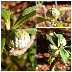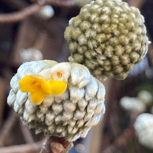 おはようございます😃 木々も春の準備を着々と進めています。 ミツマタの蕾が膨らんできました。 このアシナガバチの巣のような蕾が黄色い花の塊になります。 三河の山間部で、この木の群落を見ることができます。 一面に咲くととても美しいです。😊 ミツマタはコウゾと並んで、皮の繊維が和紙の原料になります。 現在でも奥三河では和紙作りが行われています。😁 三叉の名前は葉っぱのない今、枝の分岐の様子から納得できます。👍
