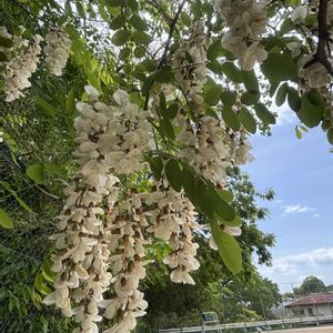 テニス🎾コートに おおいかぶさるように咲く 今日のお花 ニセアカシア いつも見てるのに ニセアカシアとは知らなかった。。