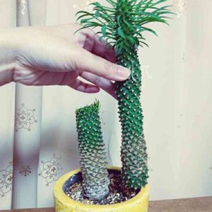 徒長しすぎた蘇鉄麒麟 それにしても真っ直ぐ過ぎ! 下の方の緑色の位置で強剪定したいけど、中々してない