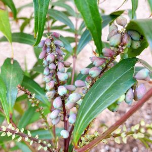 ホソバヒイラギ ナンテン ネギ科属 青い実から 熟すと紫色に変化 ブドウのような😀