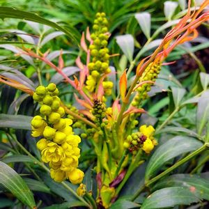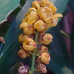 ホソバヒイラギ ナンテン 遊歩道で発見🙌 メギ科常緑低木 黄色い花びらが 新鮮な花 or 枯れそう⁉️