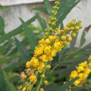 ヒイラギナンテン🌼 今まで、ほとんど花を見たことがなく、 しっかり剪定をしたことで、 たくさん花芽をつけました。 北向きに植えてありますが、道ゆく人から やさしい声をかけてもらって、 ますますきれいに咲いてくれそうです。 🏷幸せの黄色いお花 🏷日曜ビタミンカラー