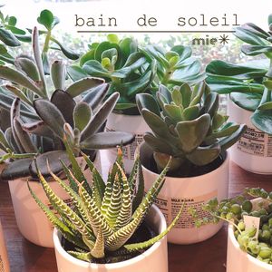 室内LED組の一部です。 それぞれ無印のヒノキキューブで売っていたのをTODAY'S SPECIALの3.5号鉢に🌱 うさ耳みたいになったクラシハマタ🐰 土に挿したミッフィーのおべんとうピックとお揃いです。 オウレイはLEDにしてから徒長が止まって頭がもりっとしました🕊 隠れてますが裏側にルビーネックレスがいます💍