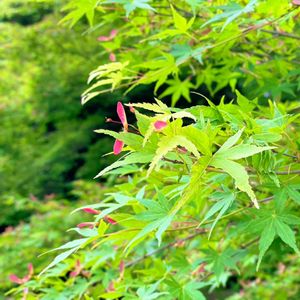 「伊呂波紅葉(イロハモミジ)」の赤い花で、おはようございます🍁✨ 新緑の季節の始まりを予感させるかのように、柔らかな翠の葉の下に咲き始めていました🚶♀️🌳✨ 桜の花を観にお出かけする"桜狩り"に対して、紅葉を観賞するのが"紅葉狩り"_。 青紅葉もまた、爽やかで綺麗な時期ですね💕︎ 目の前の自然が魅せてくれる美に心を留めて、普段よりややゆったり目に歩き、繰り返し深呼吸をします。 日常の忙しさや小さな悩み等から心を解き放ち、花や草木を心ゆくまで味わうことのできる瞬間は、今生きていることの歓びに満たされ、感謝のうちに心身が浄化されてゆきます🚶♀️🌸🌈✨ _イロハモミジの花言葉は、「美しい変化」、「大切な想い出」…他。