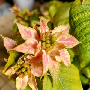 今日の花散歩 プリンセチア ロゼマーブル お花屋さんの前を通ったら あらっ✨ 可愛らしい🥰 ポインセチアの改良品種なんですね😉