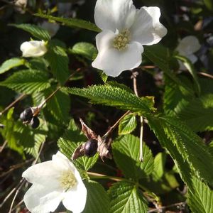 白花ヤマブキ 今日のお花 ご近所さんシリーズ① お隣さんの垣根越しに見えかくれしています😃