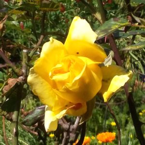 バラ グラハム・トーマス 虫に喰われながらも、健気に咲き始めました。 頑張れ~がんばれ~🙌🙌🙌