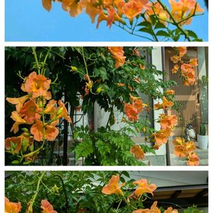 おはようございます😊 今日のお花🧡 ノウゼンカヅラ🧡🧡🧡🧡🧡 オレンジ色のお花が道路にまであふれて咲いていて圧巻でした🧡 ご近所さんシリーズ🧡
