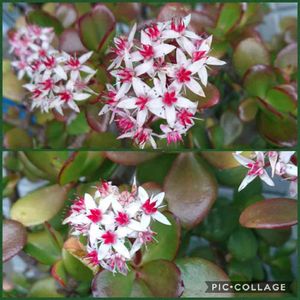 4/10(金)② 金の成る木💠💰💴💠 去年観察した花はピンク色でした。今年見かけるのはみんなこの色合いです👀!! 流行りがあるのかしら? 白い花の真ん中が紅くて可愛らしいですね~~~🤗🎵