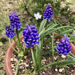 雨で庭仕事も出来ないし、ブルーインパルスも飛ばず、残念無念☔️昨日撮った写真でも🤳 1→ツヤツヤムスカリ✨お気に入りで、単鉢植えにしてました(花が咲くまで思い出せなかった😅) 2→ダブルデッカー咲いた🌷手前のゆみラッフルが限界… 3→八重咲チューリップがバッカーン🤣冬場はいい感じだったのに、球根植えすぎやった💦 4→サクラソウもそろそろ下り坂🌸