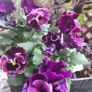 今日も一日お疲れ様でした🙇 パンジーゆみちゃんを寄植えにしてみました😊 アンティークな色合いで二重のフリンジです😍✨ 初めての子なのでドキドキです💓 明日も安定したお天気のようです☀過ごしやすいですね😉
