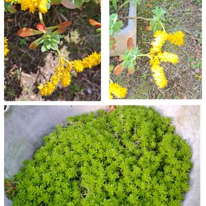 今日のお花 セダム ①マンネングサ、隙間から勝手に生えてこんもりしてます 星型⭐の黄色い花が咲いてました ②マルバマンネングサ こちらも、いつの間にか生えている 葉っぱが丸くて花みたいに可愛い花はやはり星型⭐