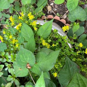 2025.06.19 セダム 黄金丸葉万年草が黄金の葉を背景に煌めく星花を庭いっぱいに散りばめてます✨ 育てていた?かよく分かりませんが祖父の家の庭でずーーーっとグランドカバーをしてました。 とても優秀な子で特に剪定や手入れをしなくて良いです。 うちでも部分的にグランドカバーとしてはもちろん、盆などでもカバーとして育ててます。 花が咲いてる時は勿論ですが、咲いていない時も黄金カラーで丸々した葉がとても可愛くて見応えがあります。