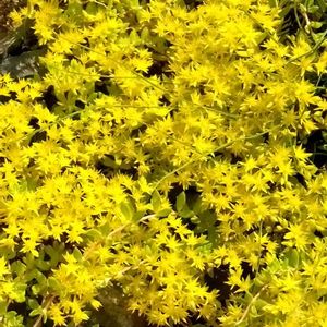 マンネングサ。星型の花がたくさん煌めいているようでした✨名前の由来は万年続く位丈夫だということです。今日から新しい週が始まります。皆さまのご健康をお祈りします🤲