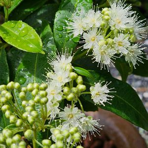 鉢植えで育てて3年目のレモンマートルが咲き始めました🍋 ①一昨日から一気に開いてきました ②近づいてみると、花びらは案外薄く、シベの集合体がキラッキラ✨ ③葉焼けしやすいので普段は軒下の日陰に置いています🪴 昨年は梅雨明けの頃に満開になりました 今年はどうでしょう🍋