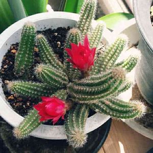 昨年ダイソーで狩ったサボテン🌵 短毛丸だと思ってたけど フォルモーサみたい😆 子株がいっぱい😆