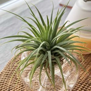🍀今日のお花・チランジア🍀 長い付き合い。 昔の写真を振り返ってみたら、 2017年に紫色の花が咲いていた。 花が咲くまでに2年くらい、 化石のように何の変化もない日々が続いていたようだ。 そう思うと、もう10年くらい我が家にいることになる。 次は、いつ花を咲かせてくれるのかな🪻