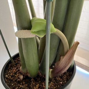 ザミオクルカスの花🪴 少し調べてみたら、なかなか咲かないらしく、 気長に待ちましょうと書いてあった。 貴重な開花のようなので、大切に見守ります💕