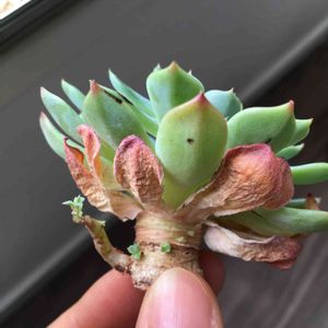 今年のGW前半に初めて手にしたリエール苗の『ロイローザ』 京都の舞鶴市にあるイロニカルさんが、ネット販売のプレオープンをした時の寄せ植えセットに入ってました。 めちゃくちゃ可愛いかったのに、梅雨の晴れ間にこれだけが群れてバラバラに… ダメ元で葉挿しをしてみたら、一度は発根したのに、夏の猛暑で根っこがカリカリに… 根はカリカリだけど親葉は水分たっぷりな感じでした。 またまたダメ元で、カリカリ根っこをちぎってみました。 数日したら新しい根っこが出てるしっ(゚ω゚) 『次こそは‼︎』 と、こまめに水やりをしたら 赤ちゃん葉っぱが出てきてくれましたー。 (おぉー!出てきてくれた‼︎やってみるもんやね〜) もう一枚も根はないけど、何かしら膨らんでるっぽいけど、なかなかそこから変化は見られません。 気合を入れ過ぎた時に限って、葉挿しに失敗してので 今回は上手く育って欲しいです。
