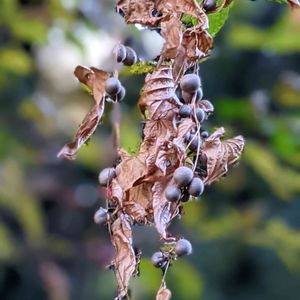 ヤマノイモ(ジネンジョ(自然薯))の実のムカゴでございます。😊 ↖️と➡️は別の場所で撮ったもので、↖️はムカゴだと教えて頂きましたが、➡️もムカゴらしいです。😅 小さいスターフルーツのようなグリーンの実、この実の中から↖️の黒っぽい実が出てくるのかなぁ〜❓ それともこの二つはまったく違う実なんですか❓🥲