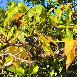 2021.10.18 秋模様の里山歩き🌾 秋ですねえ、いろんな実がなっています😊 めずらしくけっこう高い木の梢に、「ヤマノイモ」が絡みついてムカゴを作ってます。葉っぱも黄色く紅葉して秋らしい一枚😍